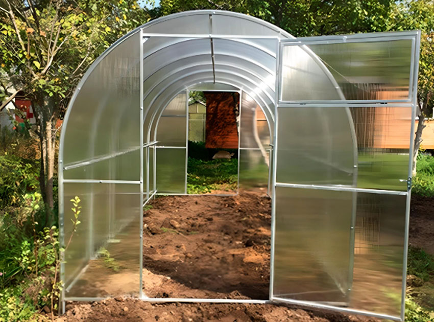 Теплицы из поликарбоната и оцинкованной стали относительно недорогие по сравнению с другими типами теплиц и при этом обладают высокими эксплуатационными свойствами и долговечностью, что делает их выгодным вариантом для выращивания растений.
